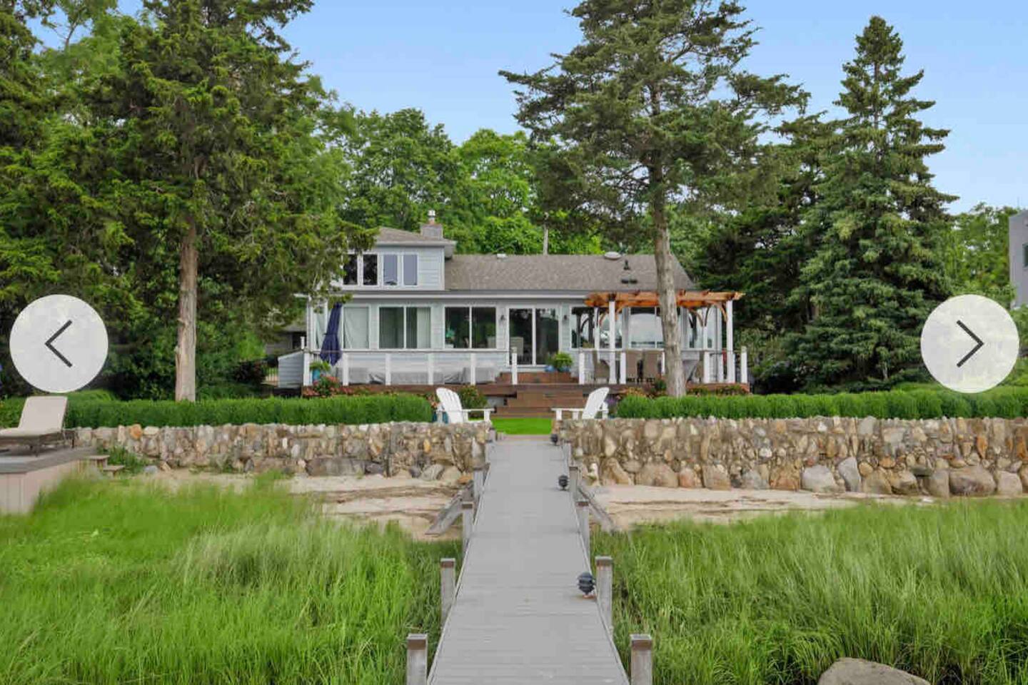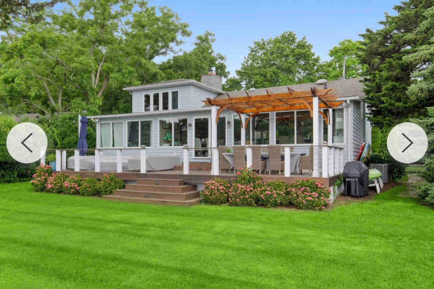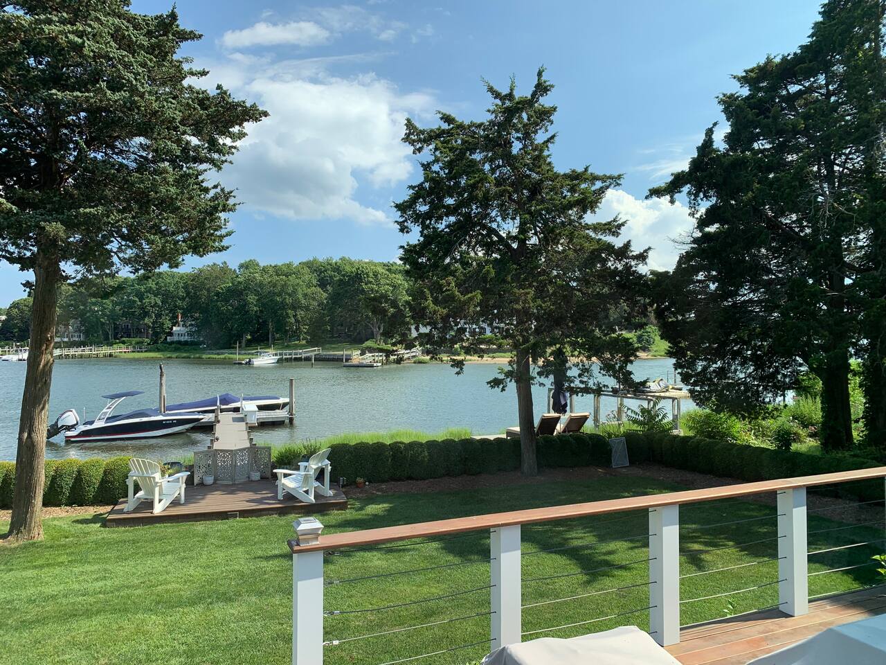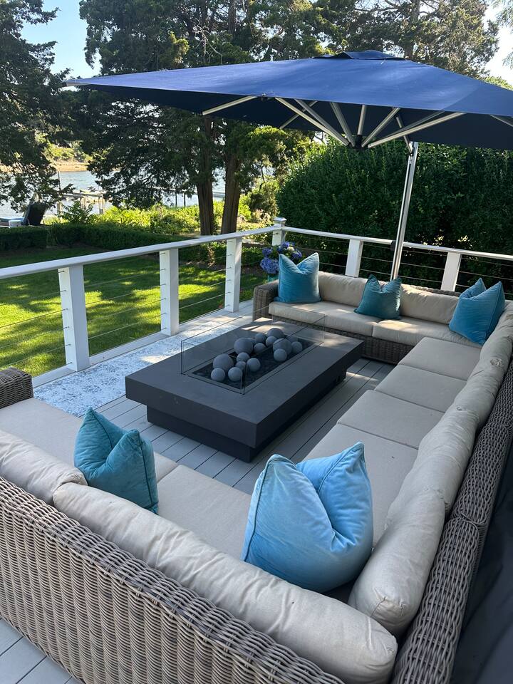 A slice of heaven! Watch the sunrise from 2 of the 3 bedrooms overlooking Sag Harbor cove. Your own private dock can accommodate a boat up to 38 feet. A small beach with its own elevated deck, and chaise lounges Step out onto the 40 foot wide deck, and relax on the premium furniture All bedrooms feature premium mattresses. Gourmet chefs kitchen is a dream for entertaining. Master Bedroom overlooks the water, and has its own en-suite bath with spa tub. Bonus playroom upstairs has three beds.