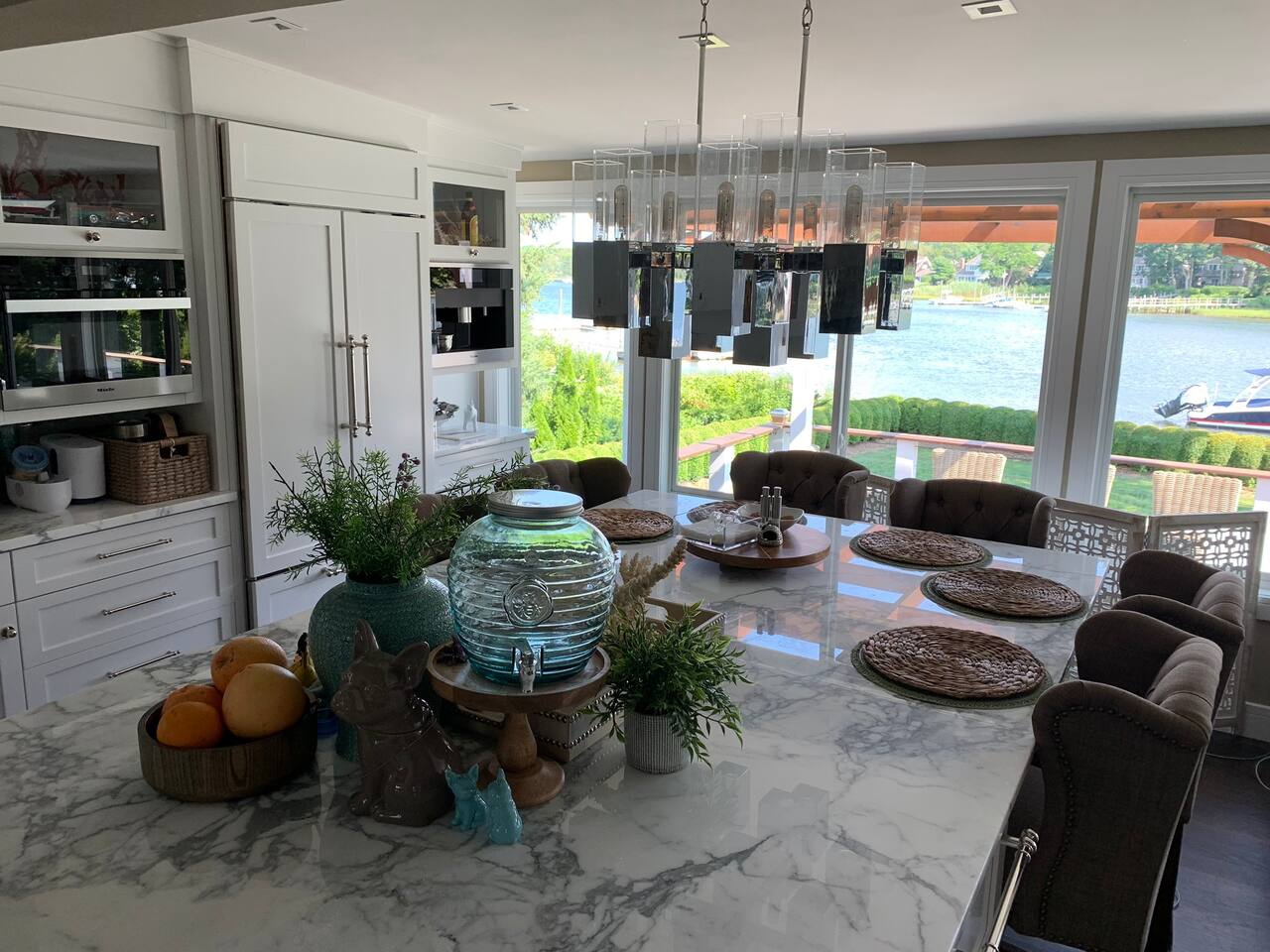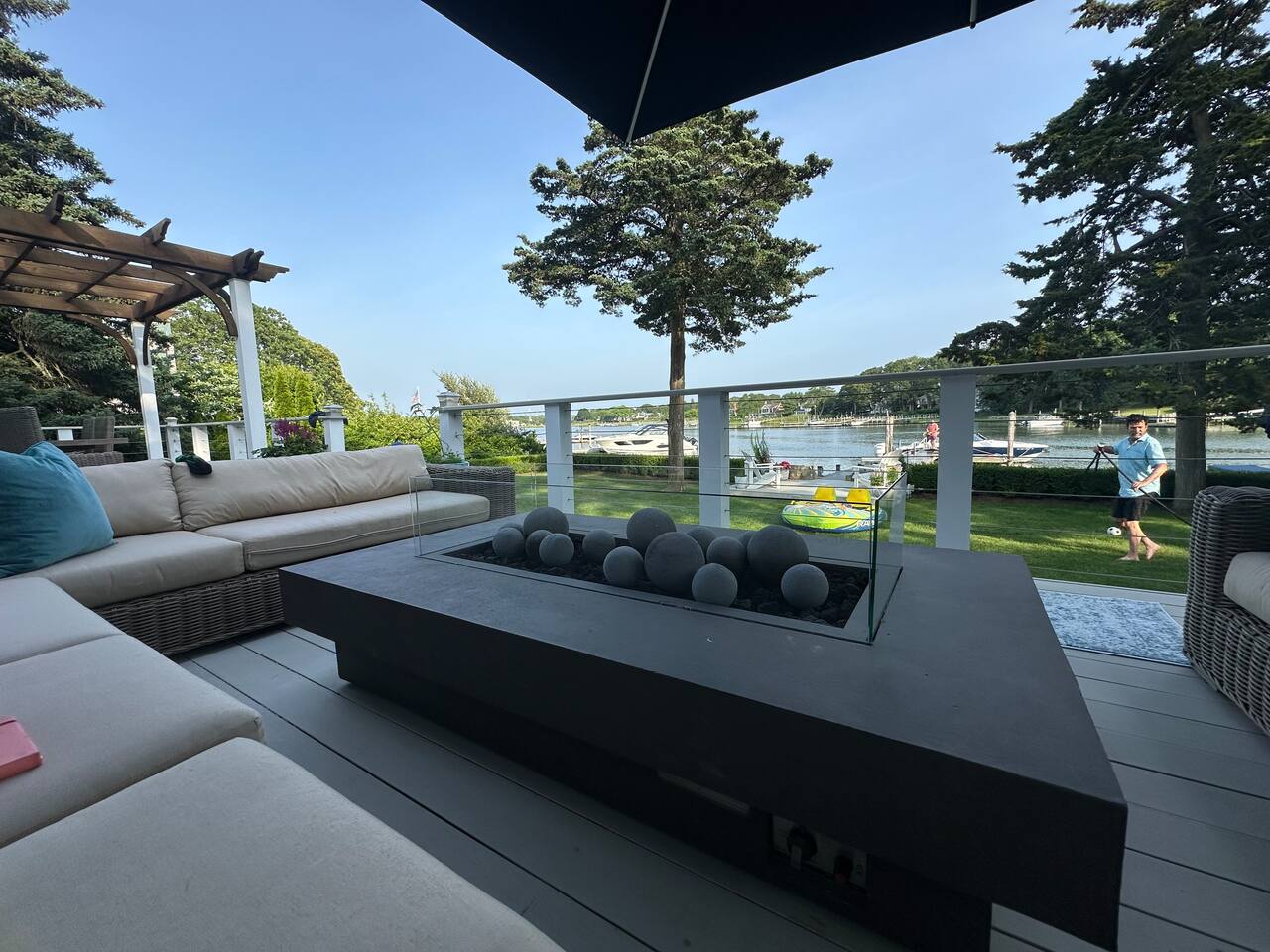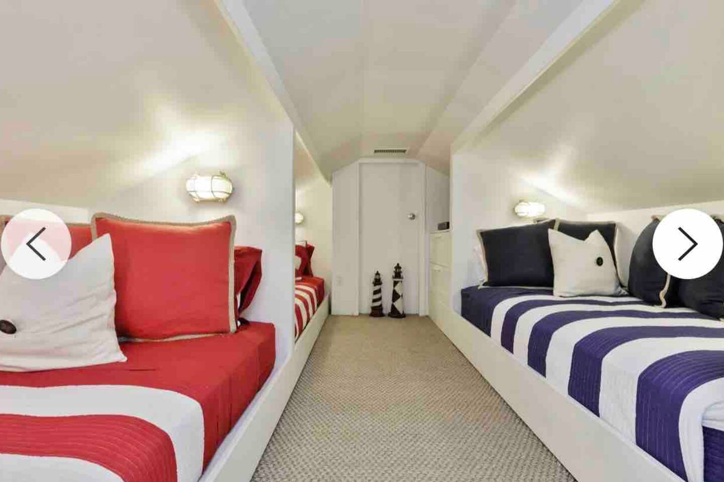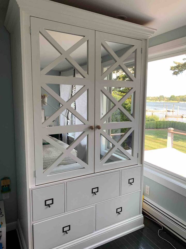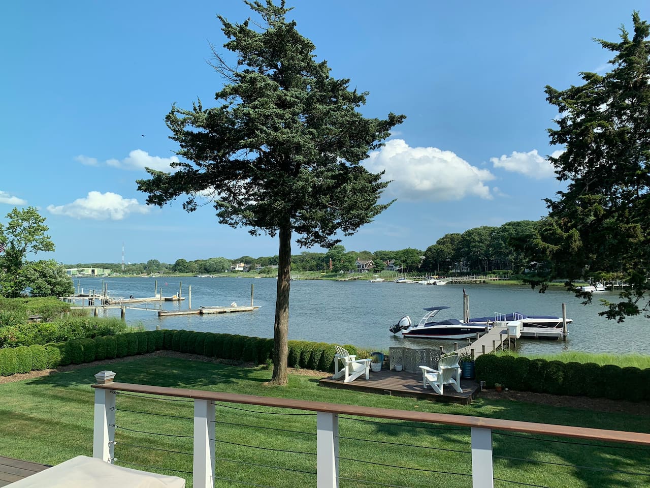 A slice of heaven! Watch the sunrise from 2 of the 3 bedrooms overlooking Sag Harbor cove. Your own private dock can accommodate a boat up to 38 feet. A small beach with its own elevated deck, and chaise lounges Step out onto the 40 foot wide deck, and relax on the premium furniture All bedrooms feature premium mattresses. Gourmet chefs kitchen is a dream for entertaining. Master Bedroom overlooks the water, and has its own en-suite bath with spa tub. Bonus playroom upstairs has three beds.